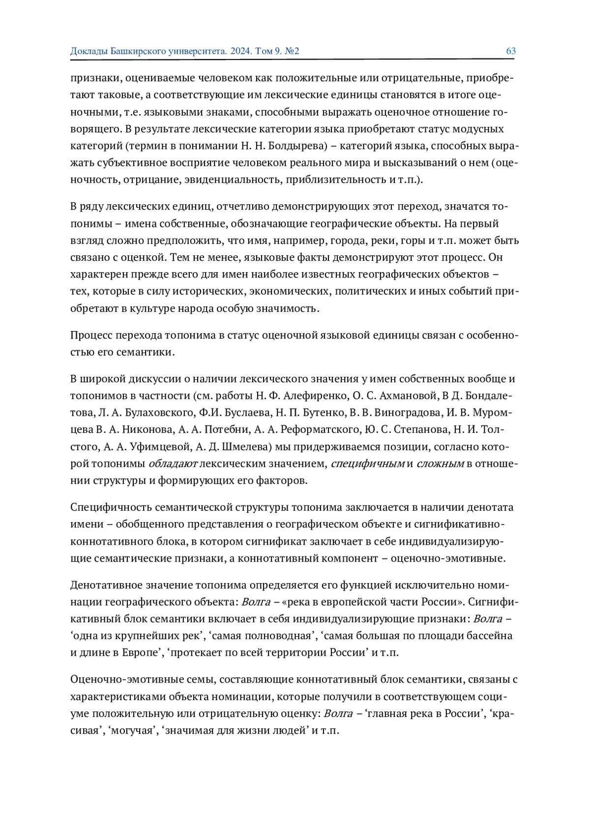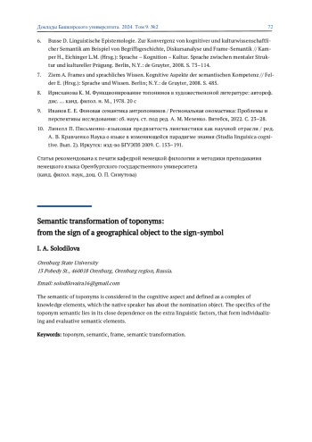 СОЛОДИЛОВА И. А. СЕМАНТИЧЕСКАЯ ТРАНСФОРМАЦИЯ ТОПОНИМОВ: ОТ ЗНАКА ГЕОГРАФИЧЕСКОГО ОБЪЕКТА К ЗНАКУ-СИМВОЛУ // ДОКЛАДЫ БАШКИРСКОГО УНИВЕРСИТЕТА. 2024. Т. 9 № 2