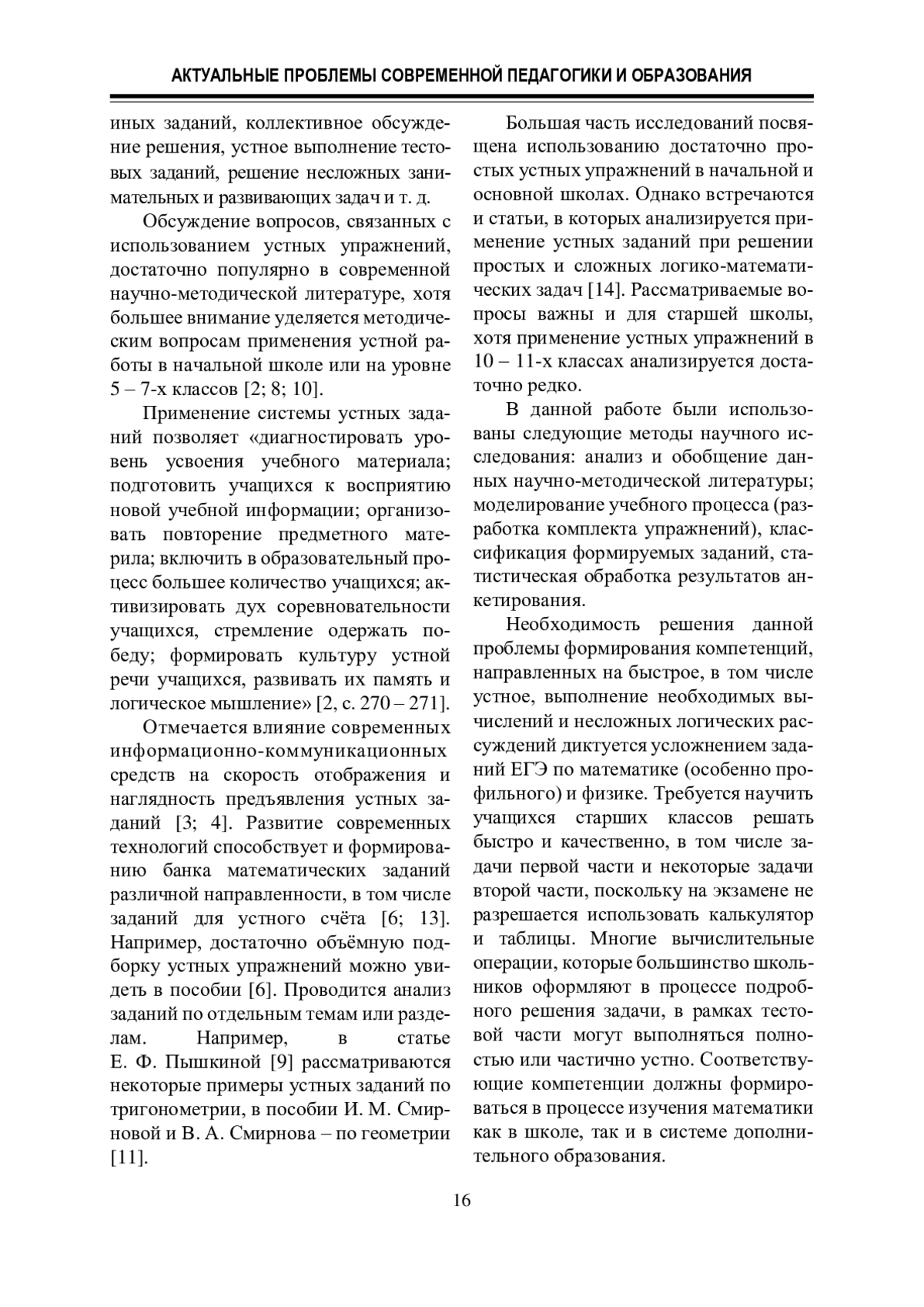 9. Пышкина Е. Ф. Использование различных видов устных упражнений на уроках математики как средство повышения уровня обученности учащихся // Педагогические науки. 2009. № 1. С. 98 - 100.