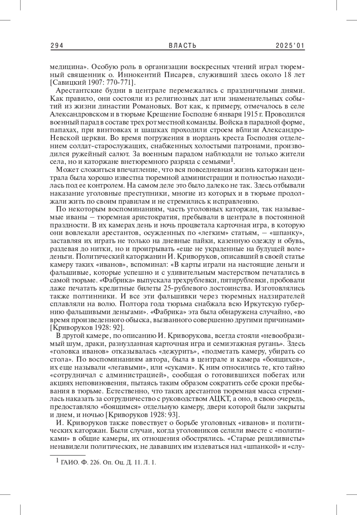 11. Криворуков И. 1928. Борьба с “иванами” в Александровской каторге. - Каторга и ссылка. № 10. С. 89-95.