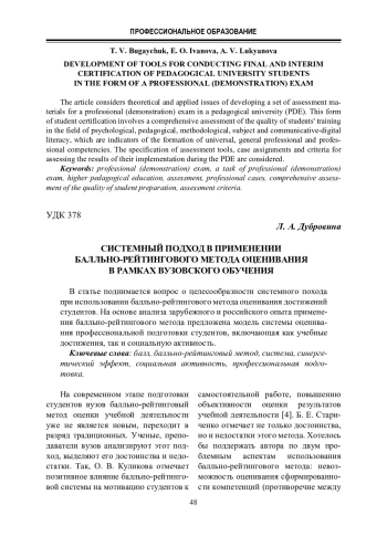 Статья: Разработка инструментария для проведения итоговой и промежуточной аттестации студентов педагогического вуза в форме профессионального (демонстрационного) экзамена (2025)