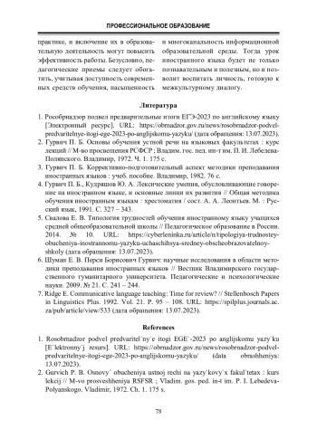 ТЯПКИНА Т. М., ТИМОЩУК И. А. АКТУАЛЬНОСТЬ КОРРЕКТИВНО-ПОДГОТОВИТЕЛЬНОГО АСПЕКТА МЕТОДИКИ ПРЕПОДАВАНИЯ ИНОСТРАННОГО ЯЗЫКА ПРОФЕССОРА П. Б. ГУРВИЧА // ВЕСТНИК ВЛАДИМИРСКОГО ГОСУДАРСТВЕННОГО УНИВЕРСИТЕТА ИМ. АЛЕКСАНДРА ГРИГОРЬЕВИЧА И НИКОЛАЯ ГРИГОРЬЕВИЧА СТОЛЕТОВЫХ. СЕРИЯ: ПЕДАГОГИЧЕСКИЕ И ПСИХОЛОГИЧЕСКИЕ НАУКИ. 2025. №1 (79)