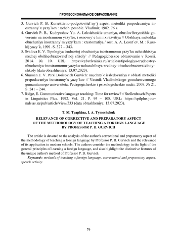 Статья: Актуальность коррективно-подготовительного аспекта методики преподавания иностранного Языка профессора П. Б. Гурвича (2025)