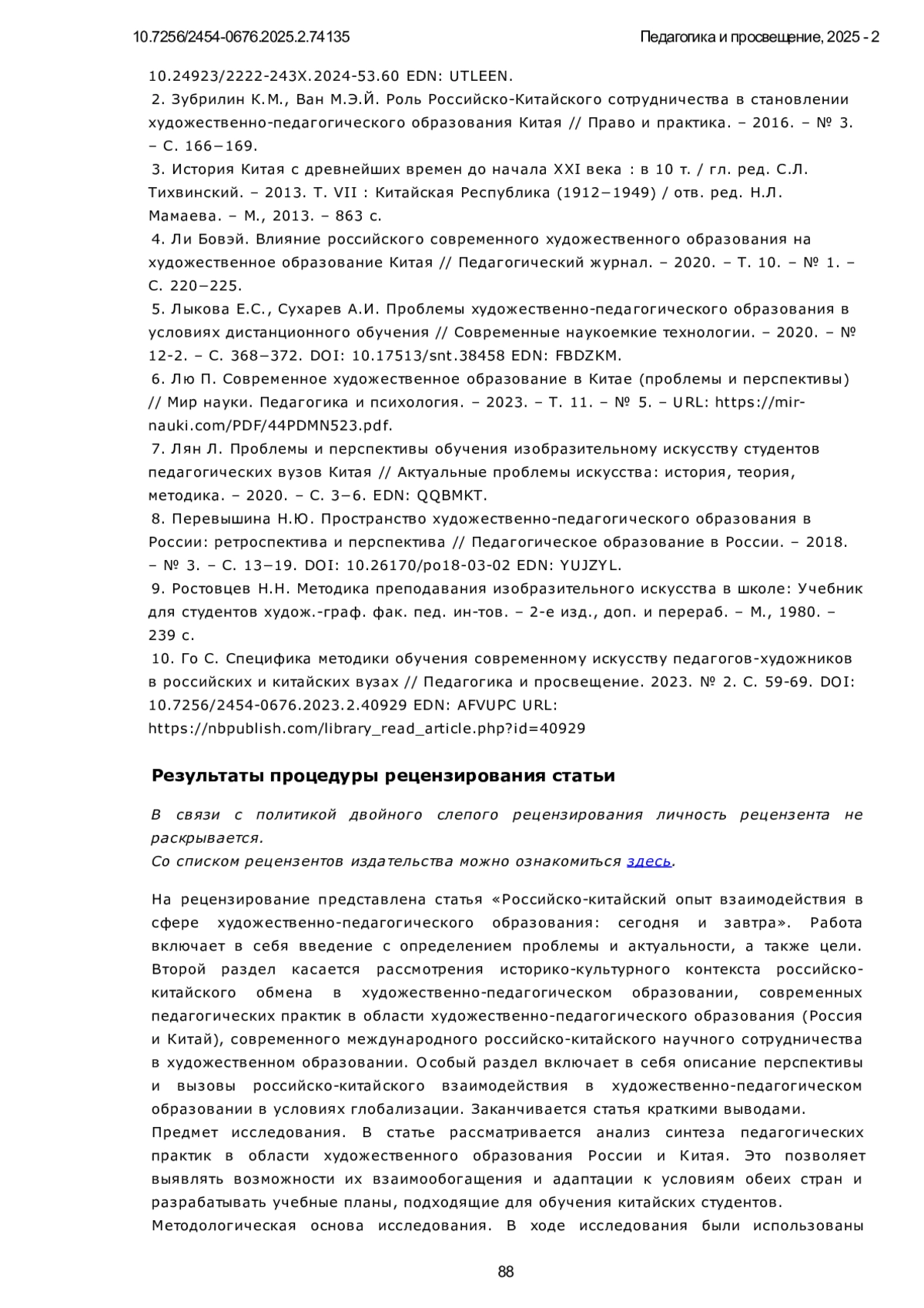 6. Лю П. Современное художественное образование в Китае (проблемы и перспективы) // Мир науки. Педагогика и психология. - 2023. - Т. 11. - № 5. - URL: https://mir-nauki.com/PDF/44PDMN523.pdf.