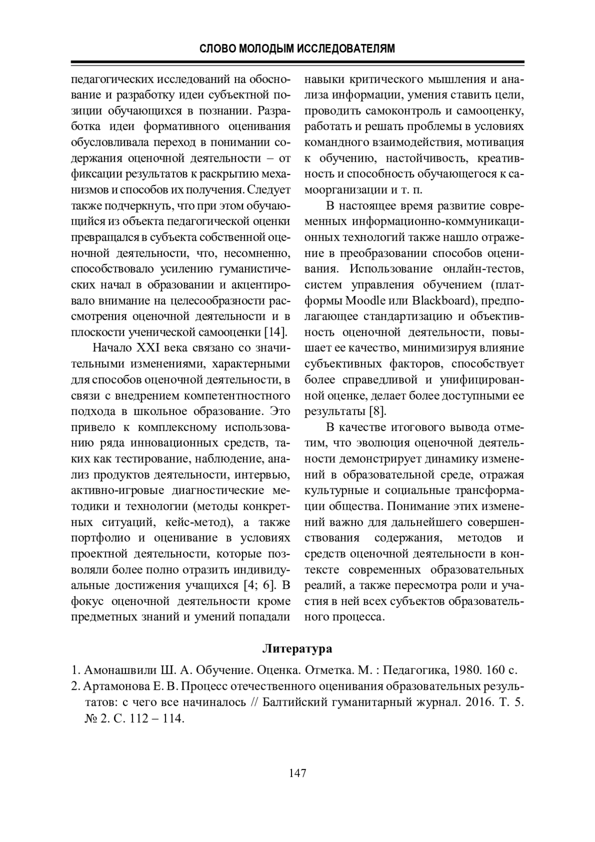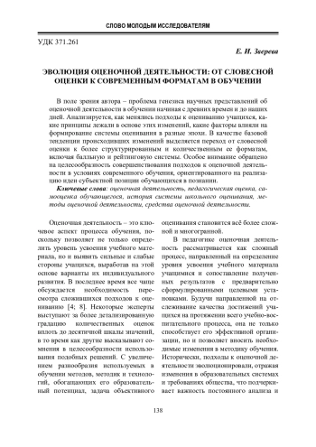 Статья: Эволюция оценочной деятельности: от словесной оценки к современным форматам в обучении (2025)