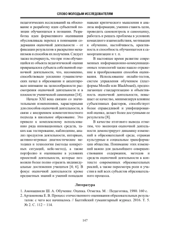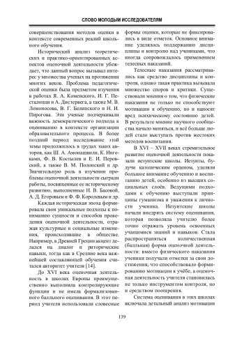 В поле зрения автора – проблема генезиса научных представлений об оценочной деятельности в обучении начиная с древних времен и до наших дней. Анализируется, как менялись подходы к оцениванию учащихся, какие принципы лежали в основе этих изменений, какие факторы влияли на формирование системы оценивания в разные эпохи. В качестве базовой тенденции происходивших изменений выделяется переход от словесной оценки к более структурированным и количественным ее форматам, включая балльную и рейтинговую системы. Особое внимание обращено на целесообразность совершенствования подходов к оценочной деятельности в условиях современного обучения, ориентированного на реализацию идеи субъектной позиции обучающихся в познании.