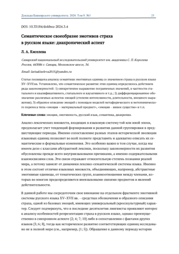 Статья: СЕМАНТИЧЕСКОЕ СВОЕОБРАЗИЕ ЭМОТИВОВ СТРАХА В РУССКОМ ЯЗЫКЕ: ДИАХРОНИЧЕСКИЙ АСПЕКТ (2024)