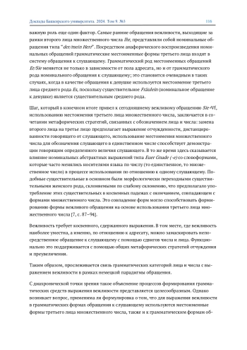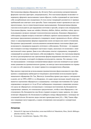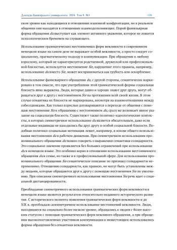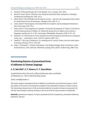 ЯКОВЛЮК А. Н., КАТАЕВА С. В., ЗАПРУДСКАЯ О. В. ОСОБЕННОСТИ ФУНКЦИОНИРОВАНИЯ МЕСТОИМЕННЫХ ФОРМ ОБРАЩЕНИЯ В НЕМЕЦКОМ ЯЗЫКЕ // ДОКЛАДЫ БАШКИРСКОГО УНИВЕРСИТЕТА. 2024. Т. 9 № 3