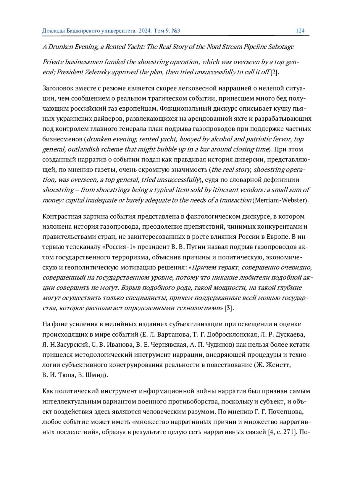 2. Pancevski B. A Drunken Evening, a Rented Yacht: The Real Story of the Nord Stream Pipeline Sabotage. URL: www.wsj.comeurope/nord-stream-pipeline-explosion-real-story-da24839c (date of access: 08.09.2024).