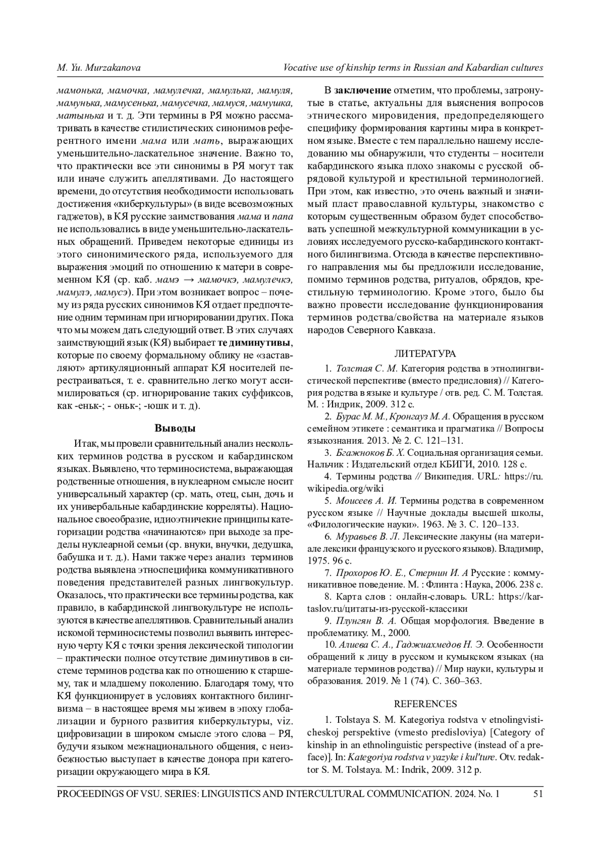 2. Бурас М. М., Кронгауз М. А. Обращения в русском семейном этикете: семантика и прагматика // Вопросы языкознания. 2013. № 2. С. 121-131. EDN: PYYZQF