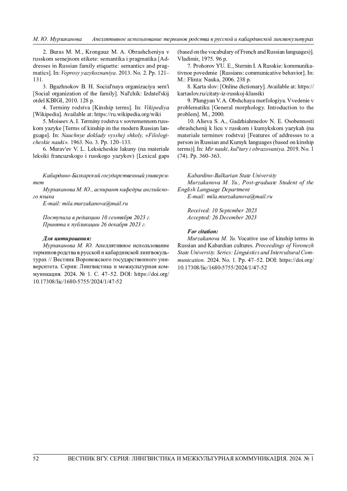 10. Алиева С. А., Гаджиахмедов Н. Э. Особенности обращений к лицу в русском и кумыкском языках (на материале терминов родства) // Мир науки, культуры и образования. 2019. № 1 (74). С. 360-363. EDN: ZCBUUX