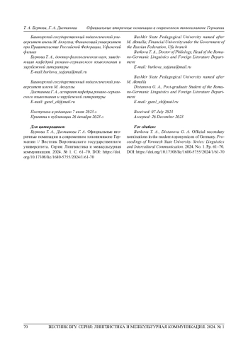 3. Буркова Т. А. Функционально-стилистическое варьирование антропонимов в немецком языке: автореф. дис.. д-ра филол. наук. Уфа, 2010. 45 с. EDN: TCGSEP