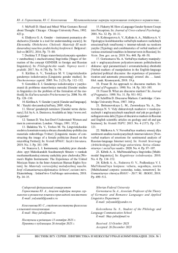 9. Горошко Е. И. Гендерные исследования в языкознании (к проблеме становления метода) // Культура народов Причерноморья. 2004. Вып. 49. С. 128-130.