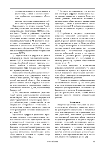 17. Цифровизация транспорта: оценка и перспективы развития / Веселова Ю.В., Гущина П.В., Шакирзянова И.Ф. // В сборнике: Управление эксплуатационной работой на транспорте (УЭРТ-2024). электронный сборник трудов II Международной научно-практической конференции. Санкт-Петербург, 2024. С. 130–132. https://www.elibrary.ru/ item.asp?id=73391257