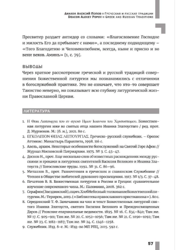 Попов А.Д., диак. Греческая и русская традиции совершения Божественной литургии: сравнительный анализ // Труды Таврической духовной семинарии. - 2024. - №1. - С.46-58.