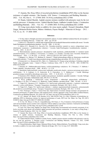 Асфальтобетоны представляют собой композиционный материал, состоящий из минеральных материалов различного гранулометрического состава и битума. Для регулирования физико-механических и эксплуатационных показателей асфальтобетонов в состав асфальтобетонной смеси вводят дополнительные компоненты. Использование в составе асфальтобетонов различных добавок требует уточнения классической схемы производства асфальтобетонной смеси, определения последовательности введения добавки и технологических режимов ее производства. В большинстве опубликованных работ по использованию структурорегулирующих добавок в составе асфальтобетона не рассматриваются вопросы технологии производства асфальтобетонной смеси. Как правило, в исследованиях указаны полученные результаты без упоминания технологических режимов, в том числе очередности смешивания компонентов. На примере использования измельченных отходов полиэтилена низкого давления в качестве структурорегулирующей добавки проведено исследование по установлению характера влияния на физико-механические показатели асфальтобетонов процесса смешивания. Анализ полученных показателей асфальтобетонных образцов с частицами полиэтилена низкого давления и вычисленные коэффициенты вариации и осцилляции показали, что на качество асфальтобетонной смеси процесс смешивания оказывает значительное влияние. Установлено, что физико-механические показатели образцов асфальтобетона могут варьироваться в пределах 6-15 %, что указывает на формирование существенной неоднородности асфальтобетонной смеси и, как следствие, асфальтобетон будет иметь значительную неоднородность своей структуры при промышленном выпуске. Установлено, что для обеспечения высокой степени композиционной однородности структуры асфальтобетона при использовании в его составе измельченного полиэтилена низкого давления необходимо его вводить в состав асфальтобетонной смеси на этапе смешивания каменных материалов. Битум добавляется в смесь после перемешивания каменных материалов с частицами полиэтилена низкого давления. Такой порядок смешивания обеспечивает минимальное время приготовления асфальтобетонной смеси, снижение потребления энергетических ресурсов, обеспечение эффективности технологии утилизации тары из полиэтилена низкого давления. На примере использования полиэтилена низкого давления в качестве структурорегулируюшей добавки показано влияние процесса смешивания в технологии производства асфальтобетонных смесей на физико-механические свойства асфальтобетона.