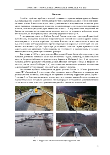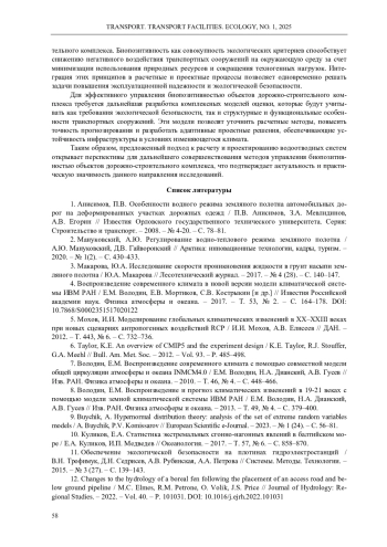 Представлены результаты исследования биопозитивных подходов к проектированию систем водоотведения для автомобильных дорог в условиях изменяющегося климата. Анализ проблемы показывает, что увеличение частоты и интенсивности экстремальных осадков, связанное с глобальными климатическими изменениями, создает дополнительные гидрологические нагрузки на дорожную инфраструктуру, что приводит к повышению риска размывов, подтоплений и разрушений земляного полотна. Для оценки гидрологических параметров использована статистическая модель Гумбеля, позволяющая прогнозировать интенсивность осадков с учетом их вероятностного характера. Проведены расчеты интенсивности осадков и пропускной способности водоотводных систем для различных периодов повторяемости (10, 100 и 1000 лет). Результаты анализа подтвердили необходимость уточнения расчетных методов и увеличения размеров водоотводных устройств для адаптации дорожной инфраструктуры к изменяющимся климатическим условиям. Особое внимание уделено интеграции биопозитивных подходов, направленных на снижение техногенных нагрузок и минимизацию негативного воздействия на природные экосистемы. Предложены рекомендации по использованию экологически устойчивых материалов, улучшению конструктивных решений и разработке комплексных моделей оценки биопозитивности объектов дорожно-строительного комплекса. Полученные результаты способствуют формированию научно обоснованных подходов к проектированию дорожной инфраструктуры, устойчивой к климатическим изменениям, и могут быть применены при разработке нормативных документов, а также в практической инженерной деятельности.