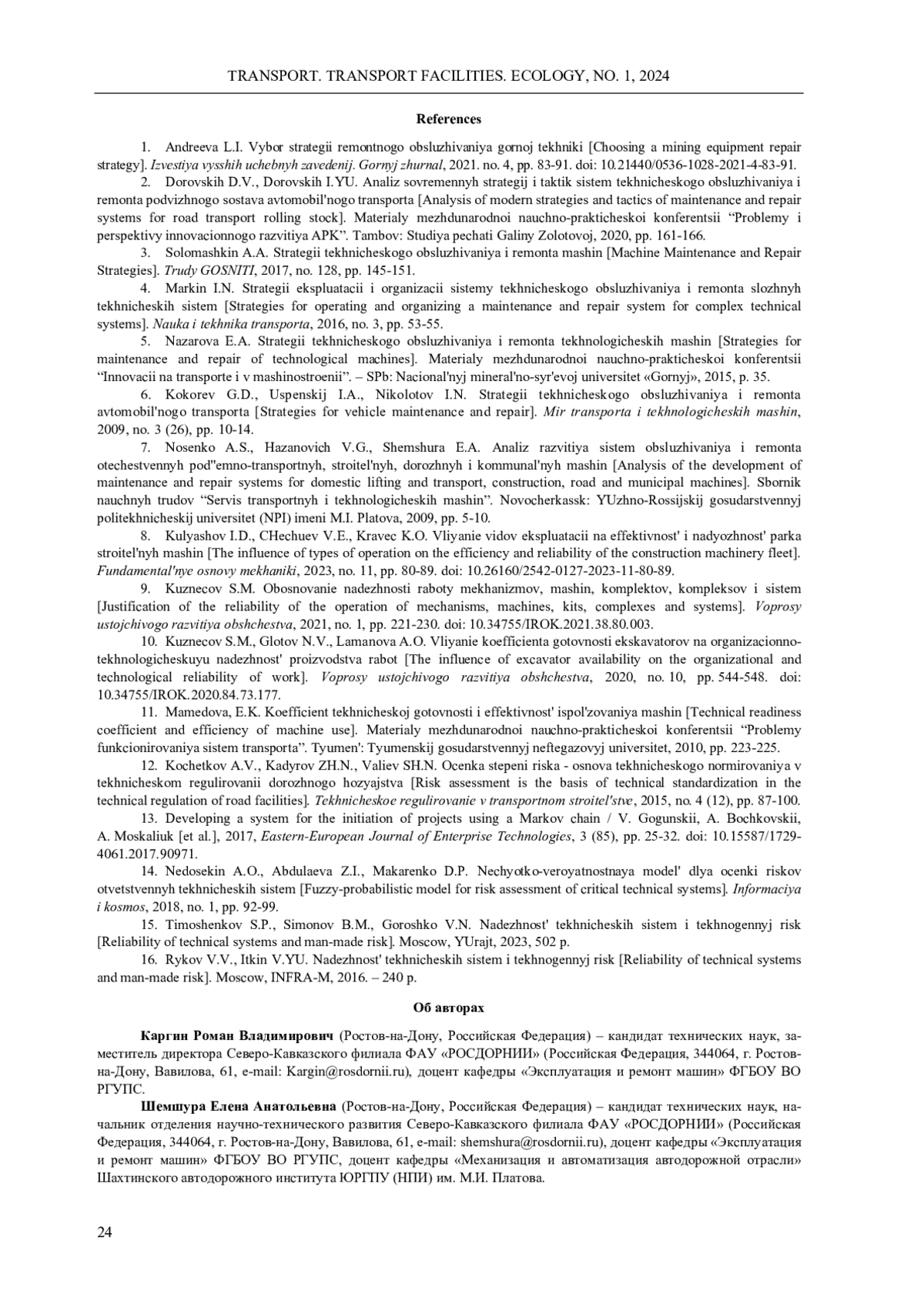 В процессе эксплуатации транспортно-технологических машин происходит ухудшение их технического состояния и потеря работоспособности, в том числе из-за внезапных отказов. Поддержанием и восстановлением работоспособного состояния машин занимаются службы технической эксплуатации предприятий путем применения различных стратегий технических воздействий в рамках системы технических обслуживаний и ремонтов. Оценку эффективности эксплуатации машин принято производить на основе фактических показателей надежности, основными из которых являются коэффициент готовности и средняя наработка между отказами, которые не в полной мере позволяют оценить уровень организации эксплуатации машин на предприятии. В данном исследовании для транспортно-технологических машин установлены варианты определения средней наработки между отказами и среднего времени восстановления работоспособного состояния в зависимости от технической или эксплуатационной производительности машины. На этой основе установлены четыре варианта определения коэффициента готовности транспортно-технологических машин, несущих различный технический смысл и характеризующих надежность машин в интенсивных условиях эксплуатации, при определенной стратегии технических воздействий и фактическом уровне организации технической эксплуатации на предприятии. В результате анализа показателей надежности транспортно-технологических машин разработано предложение о проведении оценки эффективности эксплуатации машин на предприятии по критерию надежности с учетом финансовых затрат на восстановление работоспособности машин после внезапных отказов на основании дополнительного критерия - «показателя весомости внезапного отказа» транспортно-технологических машин. Предлагаемый показатель учитывает коэффициент готовности, определенный на основании наработки между отказами по эксплуатационной производительности машины и общего времени восстановления ее работоспособного состояния, а также коэффициент, учитывающий размер затрат на восстановление работоспособности относительно балансовой стоимости машины. Показатель весомости внезапного отказа не противоречит общепризнанным теориям, в том числе теории риска, и может быть использован для оценки уровня надежности машин, обеспечиваемого принятой на предприятии стратегией технических воздействий в рамках системы технических обслуживаний и ремонтов.