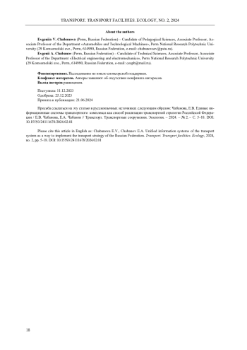 1. Абанин, С.Г. Обеспечение безопасности и организация эффективной системы выявления зон риска в транспортном комплексе / С.Г. Абанин, М.М. Железнов, М.В. Кузнецов // Транспорт России: проблемы и перспективы - 2018: материалы международной научно-практической конференции. 13-14 ноября 2018 г. СПб.: ИПТ РАН. - СПб., 2018. - Т. 2. - С. 21-24. EDN: HMBVDT