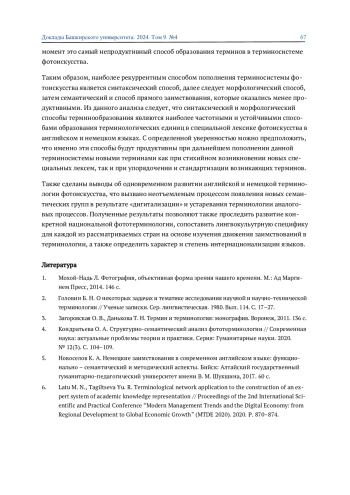 Статья: СТРУКТУРНО-СЕМАНТИЧЕСКИЕ ОСОБЕННОСТИ БИЛИНГВАЛЬНОЙ ВАРИАТИВНОСТИ ТЕРМИНОСИСТЕМ НЕМЕЦКОГО И АНГЛИЙСКОГО ЯЗЫКОВ (2024)