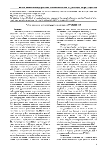 3. Система защиты картофеля от сорных растений в условиях юга Нечерноземной зоны / Е. В. Тюкина, Д. В. Бочкарев, А. В. Бардин и др. // Вестник Алтайского государственного аграрного университета. 2023. №5 (223). С. 16-23. DOI: 10.53083/1996-4277-2023-223-5-16-23 EDN: LVUWGC