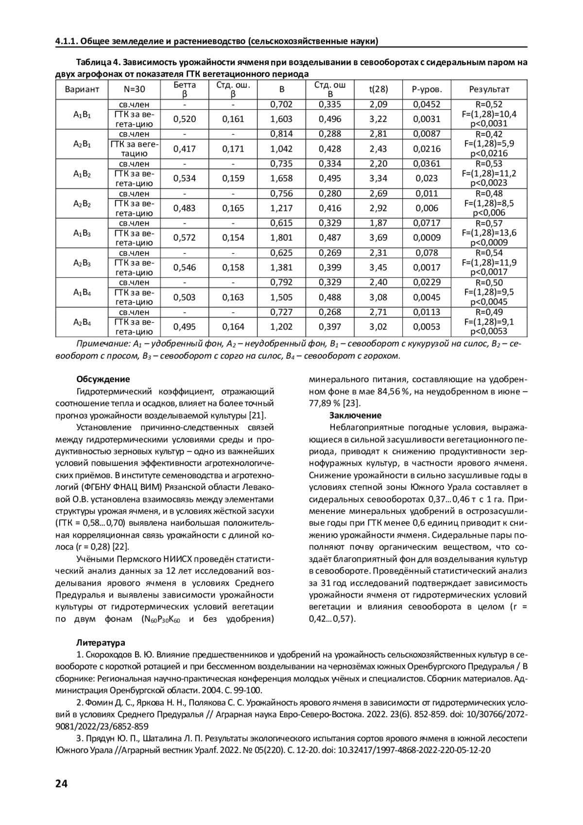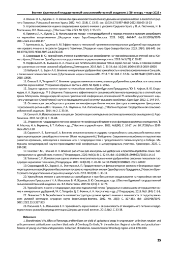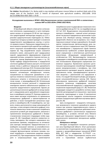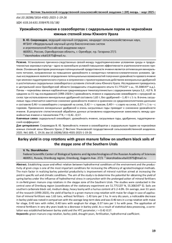 Статья: УРОЖАЙНОСТЬ ЯЧМЕНЯ В СЕВООБОРОТАХ С СИДЕРАЛЬНЫМ ПАРОМ НА ЧЕРНОЗЁМАХ ЮЖНЫХ СТЕПНОЙ ЗОНЫ ЮЖНОГО УРАЛА (2025)