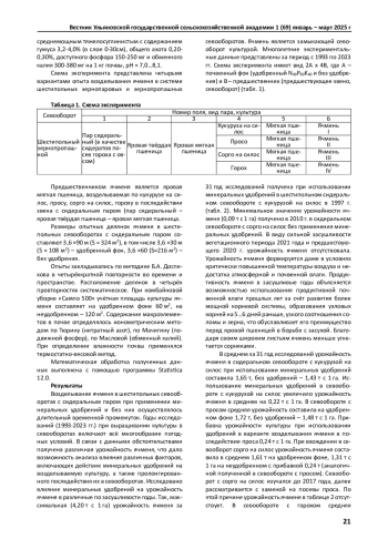 Ключевые фразы: сидеральный севооборот, урожайность ячменя, засушливые годы, удобрение, ГИДРОТЕРМИЧЕСКИЙ КОЭФФИЦИЕНТ