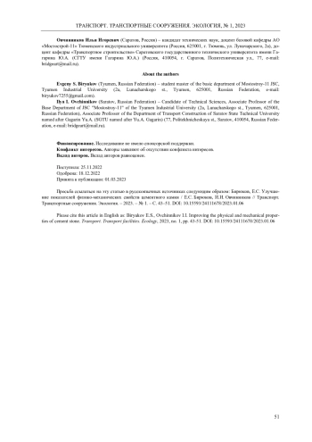 14. Василовская Н.Г., Енджиевская И.Г., Калугин И.Г. Цементные композиции, дисперсно-армированные базальтовой фиброй [Электронный ресурс] // Вестник ТГАСУ. - 2011. - № 3. - URL: https://cyberleninka.ru/article/n/tsementnye-kompozitsii-dispersno-armirovannye-bazaltovoy-fibroy (дата обращения: 12.02.2023). EDN: OEDUYJ