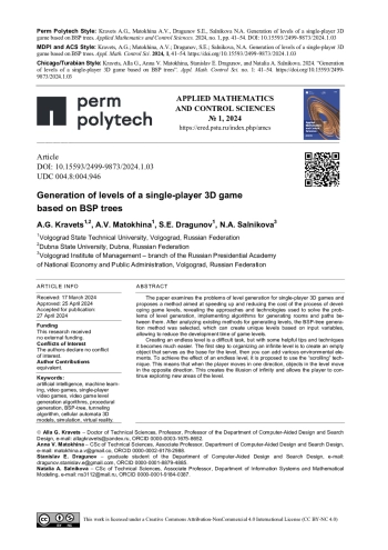 13. Старых, Ф.А. Автоматизация процедурной генерации уровней в видеоиграх на основе МЭС / Ф.А. Старых, Т.А. Саргсян, А.Г. Ванцян. - М.: Инфра-М, 2022. - С. 281-286. EDN: RVYPTY