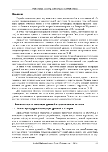 Разработка компьютерных игр является активно развивающейся и захватывающей областью программирования и развлекательной индустрии. За последние годы мобильные игры сделали огромный скачок в своем качестве. Процедурная генерация уровней – ключевая особенность жанра rogue-like и rogue-lite компьютерных игр. Генерация 3D-уровней – более сложная и менее исследованная задача, по сравнению с 2D-генерацией