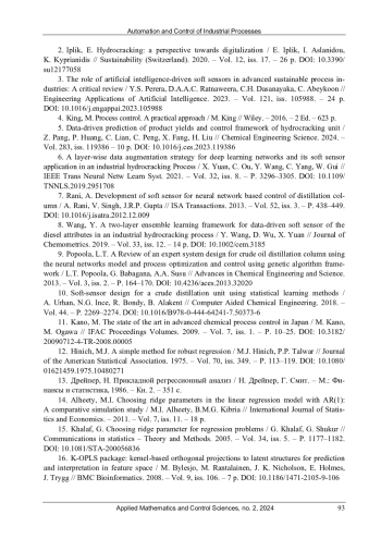 1. Kadlec, P. Data-driven soft sensors in the process industry / P. Kadlec, B. Gabrys, S. Strandt // Computers and Chemical Engineering. 2009. - Vol. 33, iss. 4. - P. 795-814. DOI: 10.1016/j.compchemeng.2008.12.012