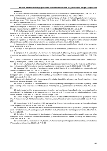 13. Seregina I. I., Belopukhov S. L. Protective and Stimulating Role of Microelements and Growth Regulators in Crop Production. Moskow: Prospekt, 2021. 184 p.