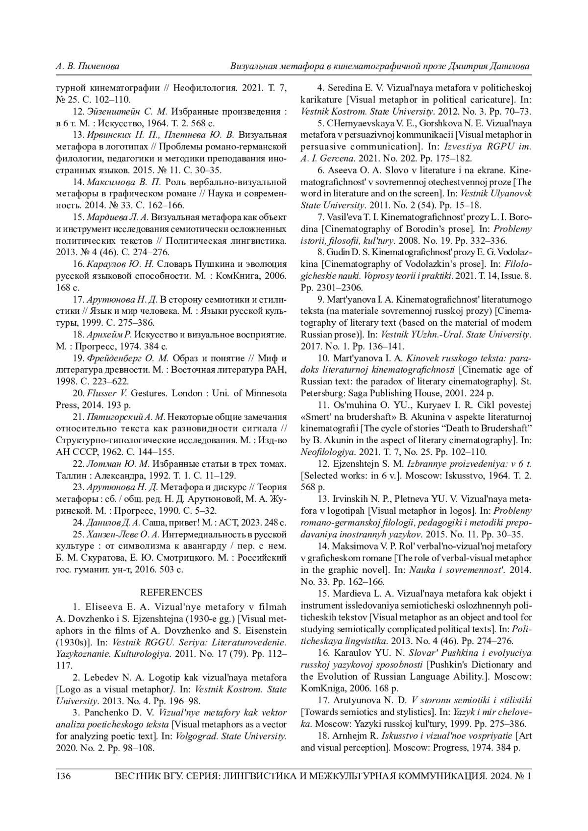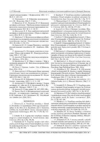 5. Черняевская В. Е., Горшкова Н. Э. Визуальная метафора в персуазивной коммуникации // Известия РГПУ им. А. И. Герцена. 2021. № 202. С. 175-182. EDN: EEWPFQ