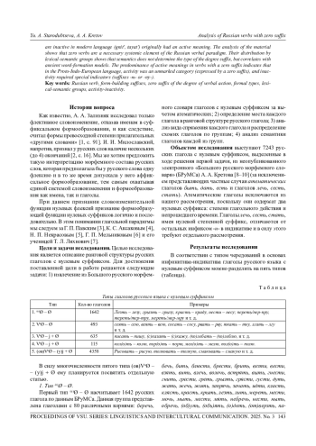 Ключевые фразы: русский глагол, формообразующие суффиксы, нулевой суффикс степени глагольного действия, формальные типы, лексико-семантические группы, активность - инактивность