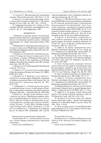 Статья посвящена анализу русских глаголов с нулевым суффиксом. В соответствии с парадигмой степеней глагольного действия (Г. В. Павский, К. С. Аксаков, Н. П. Некрасов, Г. П. Мельников) нулевые глаголы не противопоставлены «суффиксальным», а закономерно входят в глагольную систему, отражая ее историческое развитие. Объектом исследования являются 7243 (1/5 часть) русских глаголов с нулевым суффиксом (за исключением атематических глаголов), извлеченные из «Большого русского морфемного словаря» А. А. Кретова. Рассматриваемые глаголы распределяются авторами по пяти типам в зависимости от особенностей чередования в степенном суффиксе: первый тип - (e) Ø - Ø (1642 глагола) - лезть - лезу; второй тип - Va Ø - Ø (493 глагола) - сеять - сею; третий тип - Va Ø - j + Ø (635 глаголов) - резать - режз=j у; четвертый тип - Vo Ø - j + Ø (115 глаголов) - колоть - колю; пятый тип - (ов) Va Ø - (у)j + Ø (4358 глаголов) - рисовать - рисую. Семантический анализ позволил распределить их по 13 лексико-семантическим группам, среди которых доминирующими являются группы физического воздействия, перемещения объекта, движения, звукопроизводства и речи и группа состояния-бытия. Исследование показало, что по большей части глаголы с нулевым суффиксом являются активными, тогда как инактивные глаголы немногочисленны и вторичны по происхождению. Обращение к этимологическим словарям подтвердило тот факт, что глаголы, являющиеся инактивными в современном языке (гнить, таять), исходно имели активное значение. Анализ материала свидетельствует, что нулевые глаголы - необходимый системный элемент русской глагольной парадигмы. Их распределение по ЛСГ показывает, что семантика не определяет тип степенного суффикса, но коррелирует с древними словообразовательными моделями. Преобладание активных значений в глаголах с нулевым суффиксом свидетельствует о том, что в праиндоевропейском языке активность была немаркированной категорией (выражалась нулевым суффиксом), а инактивность требовала специальных показателей (суффиксов -ѣ- или -ну-)