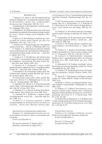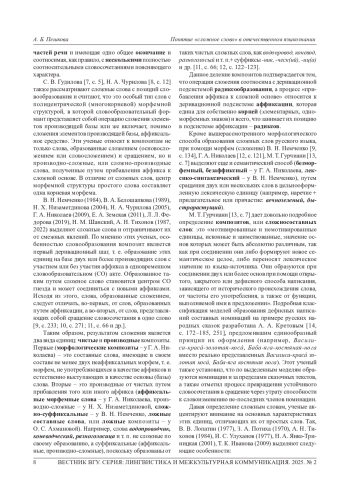 19. Федорова Л. Л. Русское словосложение: между лексикой и грамматикой // Труды Института русского языка им. В. В. Виноградова. 2019. № 2 (20). С. 276-285. EDN: YOBAVE