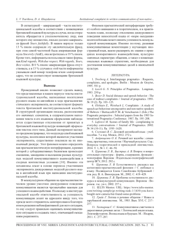 Статья: ИНСТИТУЦИОНАЛЬНАЯ ЖАЛОБА В ПИСЬМЕННОЙ КОММУНИКАЦИИ НЕНОСИТЕЛЕЙ АНГЛИЙСКОГО ЯЗЫКА (2025)