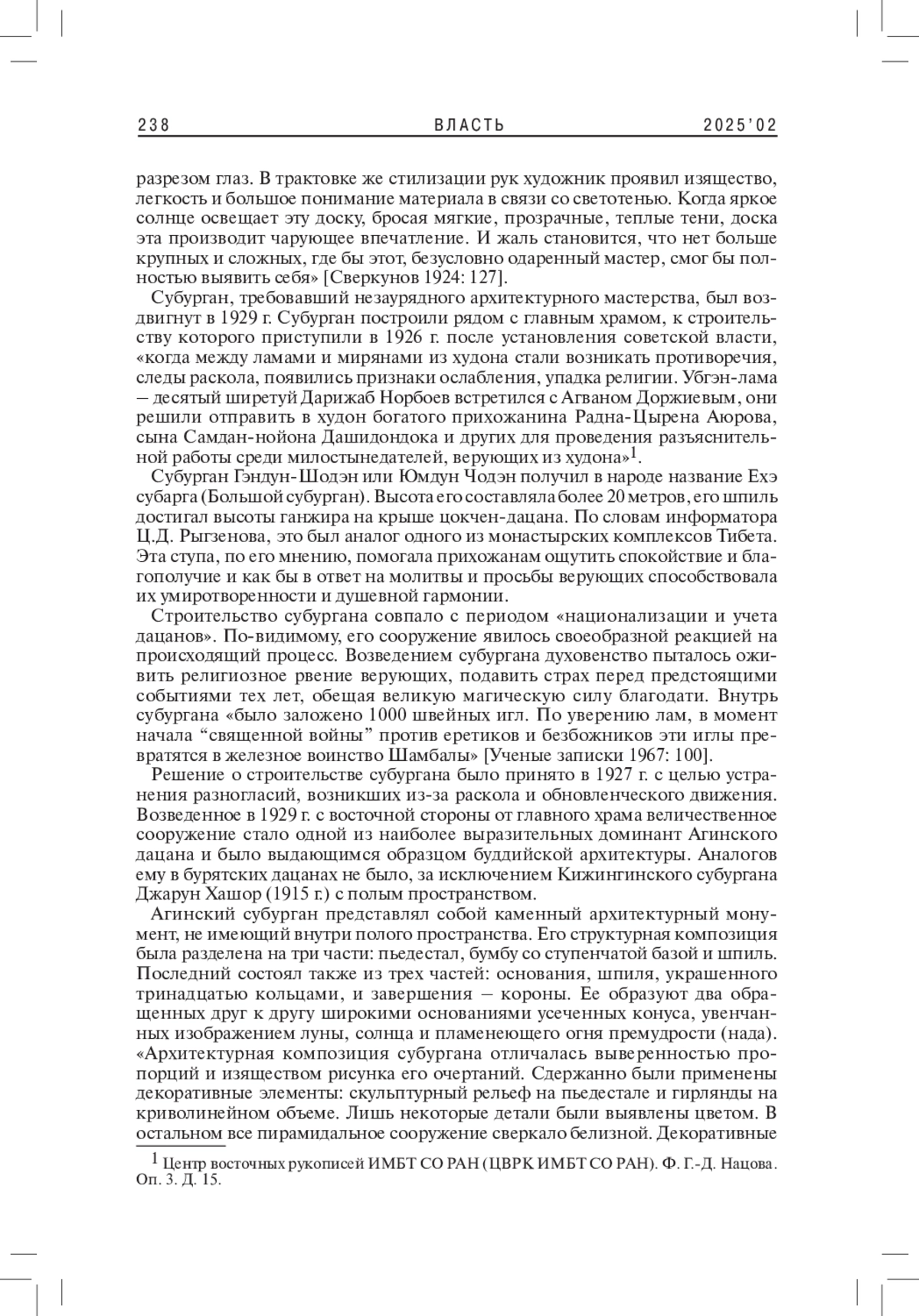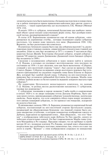 ЖАМСУЕВА Д. С. СУБУРГАНЫ ЦУГОЛЬСКОГО И АГИНСКОГО ДАЦАНОВ: ИСТОРИЧЕСКИЕ ПАМЯТНИКИ БУДДИЙСКОЙ АРХИТЕКТУРЫ // ВЛАСТЬ. 2025. ТОМ 33 № 2