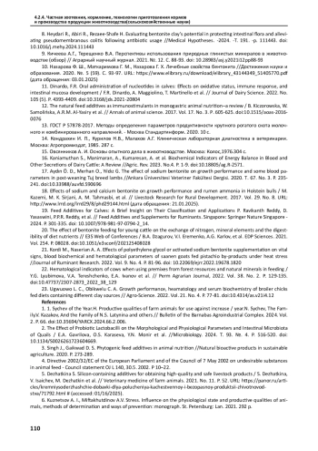 1. Сычева И.Н. Использование пробиотиков для повышения продуктивных качеств сельскохозяйственных животных / И.Н. Сычева, Е.В. Казакова, Е.С. Латынина и др. // Вестник АПК Верхневолжья. 2024. Т. 2. С. 66. DOI: 10.35694/YARCX.2024.66.2.006 EDN: LDVTLX