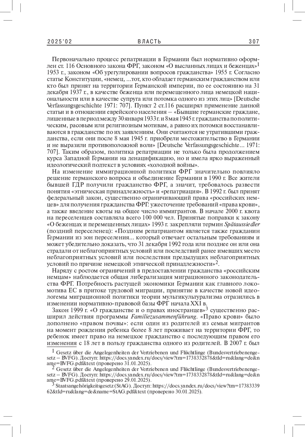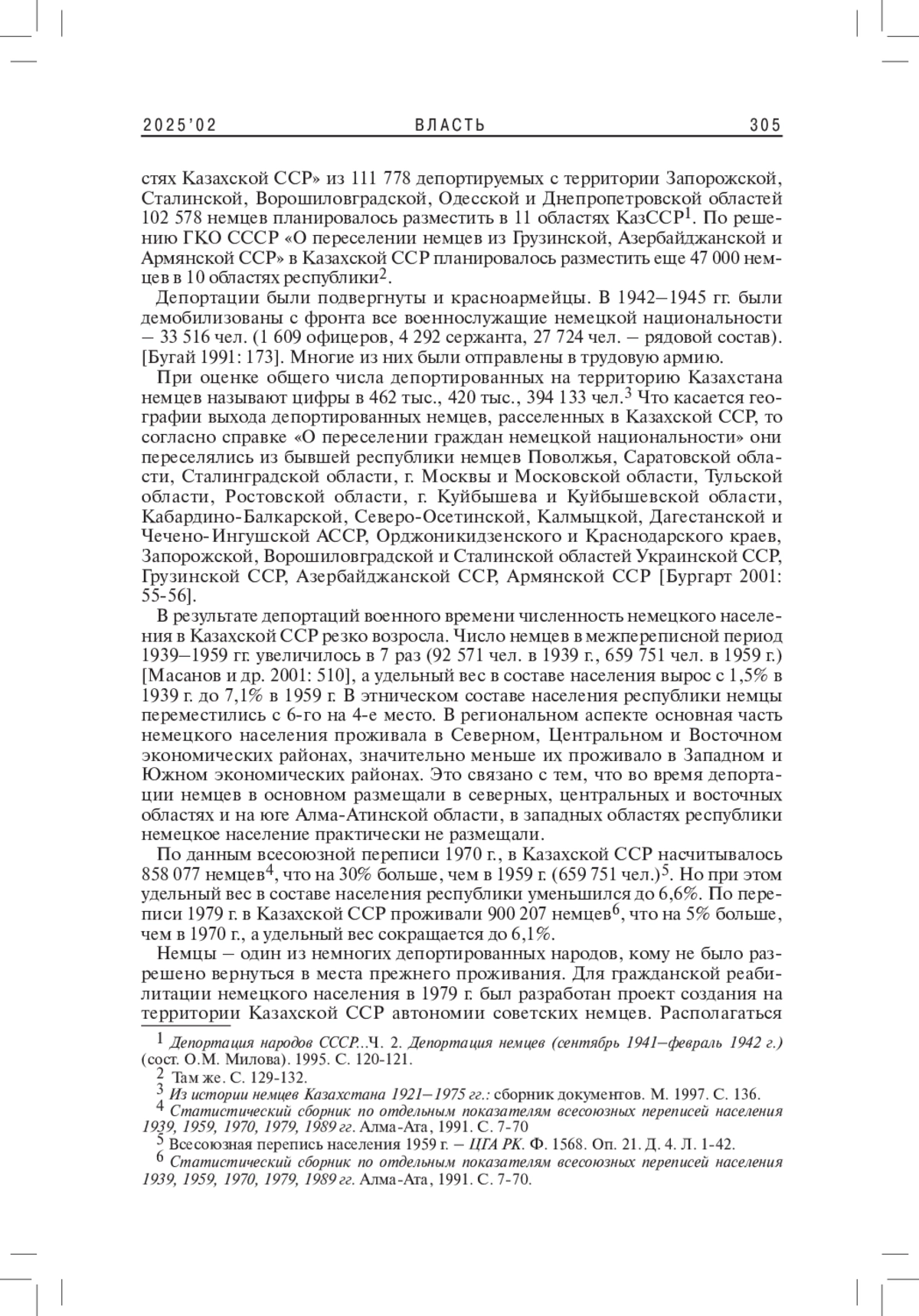 1. Бугай Н.Ф. 1991. 40-е годы: “Автономию немцев Поволжья ликвидировать…”. - История СССР. № 2. С. 172-181.