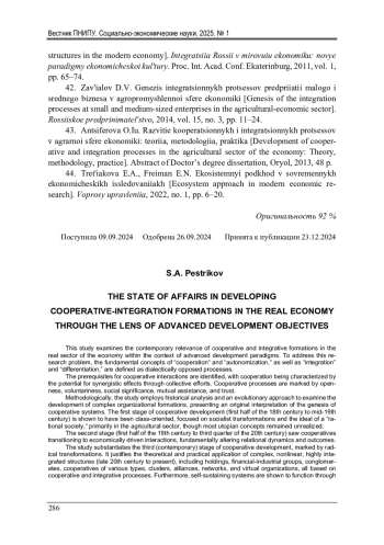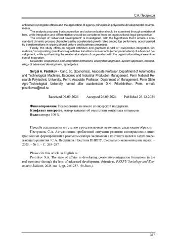 15. Пестриков, С.А. Природа возникновения кооперативных образований в аграрном секторе и их роль в социально-экономическом развитии экономики / С.А. Пестриков // Вестник Пермского национального исследовательского политехнического университета. Социально-экономические науки. - 2022. - № 3. - С. 259-278.