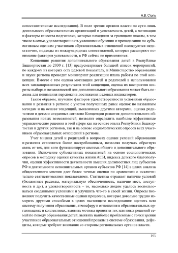 Уровень и качество образования, полученного родителями, определяя качество их жизни, создают в свою очередь запрос на приемлемые по представлениям родителей уровень и качество образования для их детей. Родители, формируя, с одной стороны, в семье условия для образования детей путем поддержки их успеваемости, выбора образовательных траекторий, с другой стороны, передавая им социальный и культурный капитал, способствуют воспроизводству образовательного капитала регионов. В ряде работ доказано, что неравенство регионов России по уровню социально-экономического положения и доле населения с высшим образованием существенно влияет на наличие и доступ к образовательным ресурсам, что определяет максимально и эффективно поддерживаемое неравенство. Несмотря на неравенство возможностей финансирования общего образования в регионах и попытки выровнять бюджетную обеспеченность субъектов РФ, усилия региональных исполнительных органов власти по обеспечению доступности общего и дополнительного образования находятся в фокусе внимания федерального центра. Показатели эффективности глав регионов, рейтинг качества жизни Агентства стратегических инициатив (АСИ), Индекс детского благополучия и ряд других подходов содержат оценки условий образования и развития, которые создаются на уровне регионов страны, и могут быть объектами управленческих воздействий региональной власти. Цель работы - обосновать необходимость социологического исследования для оценки условий образования и развития в регионе. Для решения поставленной задачи использован обзор и теоретический анализ методических подходов к оценке элемента среды «Образование и развитие» в рейтинге качества жизни АСИ, подходы к оценке домена «Образование и развитие» в индексе детского благополучия, итоги оценки индекса детского благополучия в Республике Башкортостан, статистические данные и нормативно-правовые акты по теме общего и дополнительного образования региона. Это позволило определить перспективы социологического исследования и получения субъективных оценок удовлетворенности качеством образования школьников. Качество образования может определяться в контексте процесса получения общего и дополнительного образования, а также получаемыми и полученными в его ходе результатами, которые также связаны с мотивами выбора и востребованностью разных видов дополнительного образования школьников, влияя на образовательные траектории (вуз, СПО, профессиональная ориентация). Делается вывод о том, что в России выстроена система оценки качества образования и необходимы способы получения субъективных оценок об удовлетворенности созданными условиями образования и развития, поскольку наличие условий не всегда означает доступность и получение детьми образования. В работе проводится обоснование методики социологического опроса - разработка группы вопросов анкеты для оценки факторов удовлетворенности условиями образования и развития в регионе, что позволит затем выявить наиболее актуальные способы покрытия выявленных дефицитов.