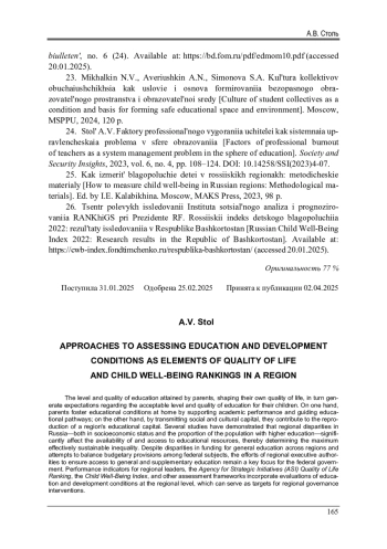 Статья: ПОДХОДЫ К ОЦЕНКАМ УСЛОВИЙ ОБРАЗОВАНИЯ И РАЗВИТИЯ КАК ЭЛЕМЕНТАМ РЕЙТИНГА КАЧЕСТВА ЖИЗНИ И ДЕТСКОГО БЛАГОПОЛУЧИЯ В РЕГИОНЕ (2025)