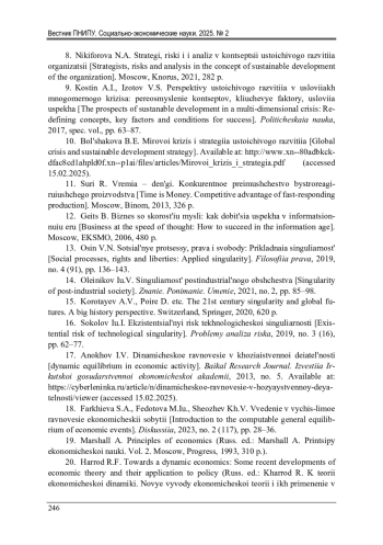 17. Анохов, И.В. Динамическое равновесие в хозяйственной деятельности [Электронный ресурс] / И.В. Анохов // Baikal Research Journal. Известия Иркутской государственной экономической академии. - 2013. - № 5. - URL: https://cyberleninka.ru/article/n/dinamicheskoe-ravnovesie-v-hozyaystvennoy-deyatelnosti/viewer (дата обращения: 15.02.2025). EDN: RPCKNR