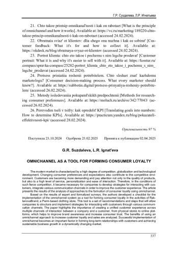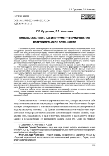 Статья: ОМНИКАНАЛЬНОСТЬ КАК ИНСТРУМЕНТ ФОРМИРОВАНИЯ ПОТРЕБИТЕЛЬСКОЙ ЛОЯЛЬНОСТИ (2025)