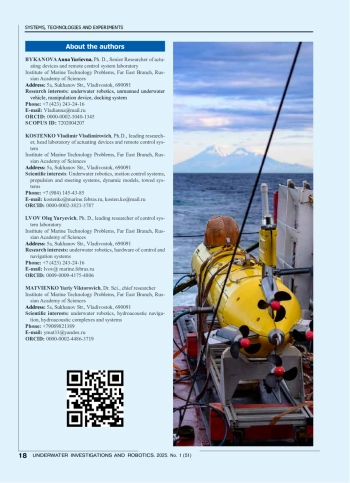 9. Костенко В.В., Толстоногов А.Ю. Управление глубиной погружения необитаемого подводного аппарата, оснащенного системой регулирования плавучести // Подводные исследования и робототехника. 2019. № 1 (27). С. 4-11.