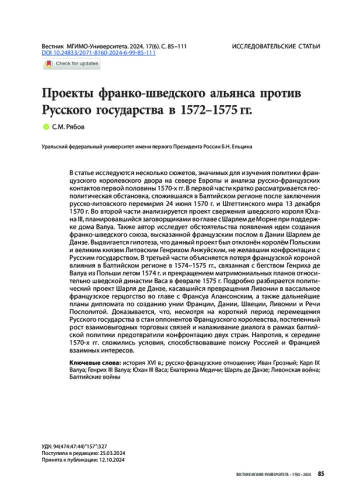 В статье исследуются несколько сюжетов, значимых для изучения политики французского королевского двора на севере Европы и анализа русско-французских контактов первой половины 1570-х гг. В первой части кратко рассматривается геополитическая обстановка, сложившаяся в Балтийском регионе после заключения русско-литовского перемирия 24 июня 1570 г. и Штеттинского мира 13 декабря 1570 г. Во второй части анализируется проект свержения шведского короля Юхана III, планировавшийся заговорщиками во главе с Шарлем де Морне при поддержке дома Валуа. Также автор исследует обстоятельства появления идеи создания франко-шведского союза, высказанной французским послом в Дании Шарлем де Данзе. Выдвигается гипотеза, что данный проект был отклонён королём Польским и великим князем Литовским Генрихом Анжуйским, не желавшим конфронтации с Русским государством. В третьей части объясняется потеря французской короной влияния в Балтийском регионе в 1574–1575 гг., связанная с бегством Генриха де Валуа из Польши летом 1574 г. и прекращением матримониальных планов относительно шведской династии Васа в феврале 1575 г. Подробно разбирается политический проект Шарля де Данзе, касавшийся превращения Ливонии в вассальное французское герцогство во главе с Франсуа Алансонским, а также дальнейшие планы дипломата по созданию унии Франции, Дании, Швеции, Ливонии и Речи Посполитой. Доказывается, что, несмотря на короткий период перемещения Русского государства в стан оппонентов Французского королевства, постепенный рост взаимовыгодных торговых связей и налаживание диалога в рамках балтийской политики предотвратили конфронтацию двух стран. Напротив, к середине 1570-х гг. сложились условия, способствовавшие поиску Россией и Францией взаимных интересов.