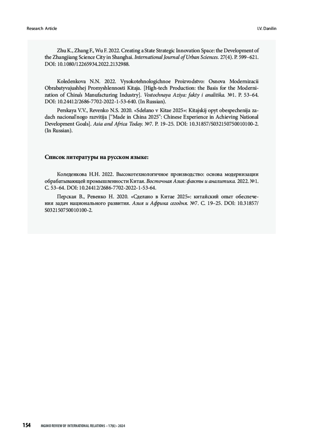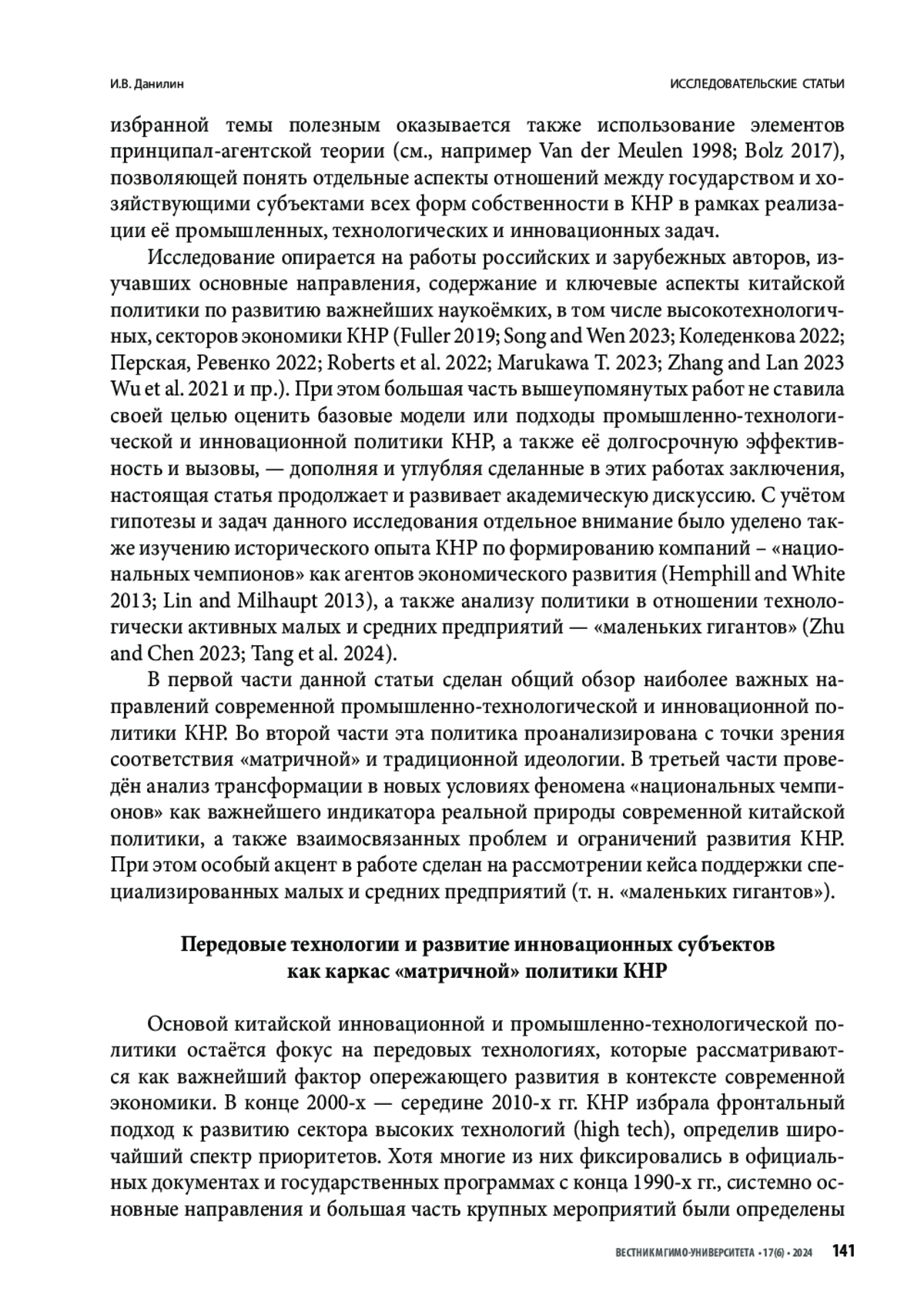 ДАНИЛИН И. В. «НАЦИОНАЛЬНЫЕ ЧЕМПИОНЫ» И ТЕХНОЛОГИЧЕСКИЕ «МАЛЕНЬКИЕ ГИГАНТЫ»: КИТАЙСКАЯ ПРОМЫШЛЕННАЯ ПОЛИТИКА МЕЖДУ МОДЕРНИЗАЦИЕЙ И ТРАДИЦИЕЙ // ВЕСТНИК МГИМО-УНИВЕРСИТЕТА. 2024. ТОМ 17, № 6