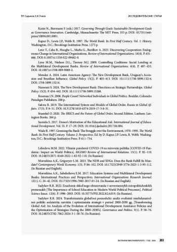 22. Морозкина А.К., Григорьев Л.М. 2023. Новый банк развития и цели устойчивого развития: выполняет ли банк свой мандат? Современная мировая экономика. 1(3). C. 95-112. https://doi.org/10.17323/2949-5776-2023-1-3-95-112.