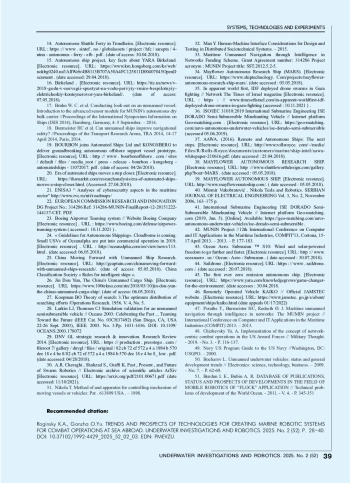 101. Bocharov L. Unmanned underwater vehicles: status and general development trends // Electronics: science, technology, business. - 2009. - No. 7. - P. 62-69.