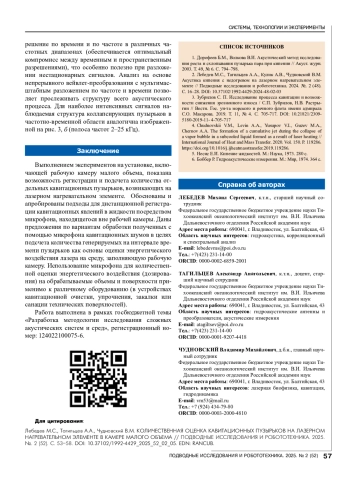 8. Lebedev M.S., Tagil’cev A.A., Kulik A.V., Chudnovskij V.M. Akustika kipenija s nedogrevom na lazernom nagrevatel’nom jelemente. Podvodnye issledovanija i robototehnika. 2024. No. 2 (48). P. 16-28. [In Russ]. DOI: 10.37102/1992-4429-2024-48-02-03